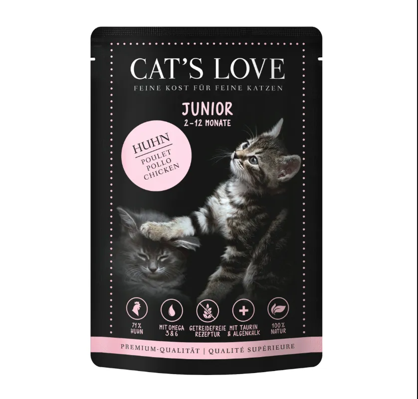 Cat's Love Junior pollo 12x85gr está dirigido a propietarios de gatos jóvenes que buscan una opción práctica organizada y fácil de utilizar en la alimentación diaria de su mascota.