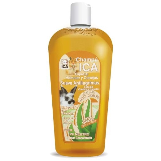 Ica Champú para Roedores Aloe Vera es una especial solución de la más alta calidad, que cuida que la piel y el pelaje de los roedores estén en las mejores condiciones de salud. Disponible en envase de 400 ml.