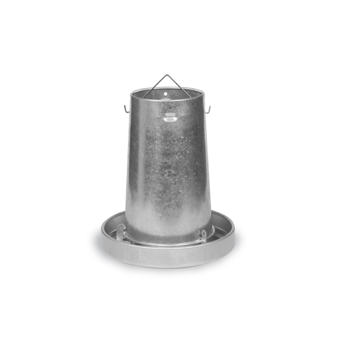 Este comedero está fabricado en acero galvanizado un material habitual en accesorios para animales por su durabilidad y resistencia. Su estructura está pensada para un uso continuado en entornos como gallineros o zonas de cría.