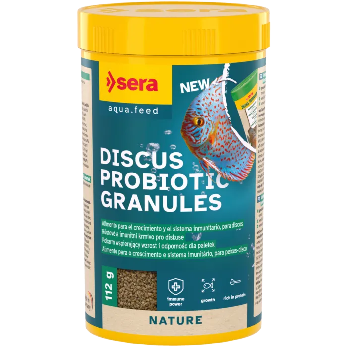Sera Discus Probiotic Granules 250ml es un alimento completo en formato granulado desarrollado para peces que combina ingredientes de origen animal y vegetal junto con probióticos. Este tipo de formulación está orientada a ofrecer una dieta equilibrada dentro del mantenimiento habitual en acuariofilia.